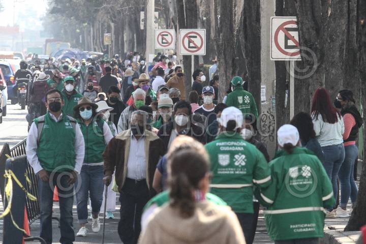 CIUDAD DE MÉXICO, 24FEBRERO2021.- Se llevo acabo el primer día de la jornada de vacunación contra COVID-19, en la alcaldía Tláhuac, desde tempranas horas cientos de adultos mayores acudieron al Bosque de Tláhuac para la aplicación de la vacuna rusa Sputnik V. FOTO: ROGELIO MORALES /CUARTOSCURO.COM