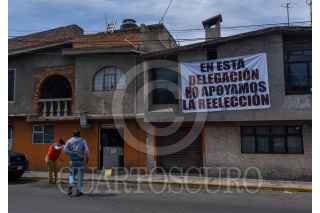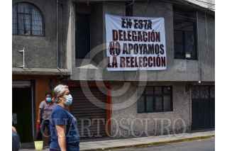 TOLUCA, ESTADO DE MÉXICO, 24FEBRERO2021.- Delegados de la zona sur del municipio de Toluca en conferencia de prensa rechazaron la reelección del alcalde Juan Rodolfo Sanchez Gómez, en algunas delegaciones ya instalaron mantas en rechazo. FOTO: CRISANTA ESPINOSA AGUILAR /CUARTOSCURO.COM