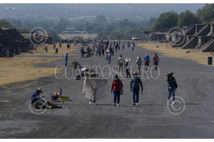 SAN JUAN TEOTIHUACÁN, ESTADO DE MÉXICO, 24FEBRERO2020.- Por segunda ocasión fue reabierta la zona Arqueológica de Teotihuacán después de de permanecer cerrada al público debido a la emergencia sanitaria por la pandemia de covid-19. El aforo continúa al 30% con accesos a las explanadas y plazas abiertas como la calzada de los muertos, mientras el ascenso a las pirámides de la luna y sol aún no son permitidos. El horario se mantiene de 9 a 15 horas siguiendo las medidas sanitarias correspondientes durante el semáforo naranja epidemiológico. FOTO: MARIO JASSO /CUARTOSCURO.COM