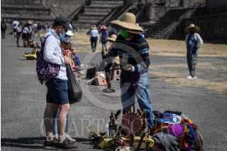 SAN JUAN TEOTIHUACÁN, ESTADO DE MÉXICO, 24FEBRERO2020.- Por segunda ocasión fue reabierta la zona Arqueológica de Teotihuacán después de de permanecer cerrada al público debido a la emergencia sanitaria por la pandemia de covid-19. El aforo continúa al 30% con accesos a las explanadas y plazas abiertas como la calzada de los muertos, mientras el ascenso a las pirámides de la luna y sol aún no son permitidos. El horario se mantiene de 9 a 15 horas siguiendo las medidas sanitarias correspondientes durante el semáforo naranja epidemiológico. FOTO: MARIO JASSO /CUARTOSCURO.COM