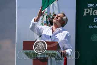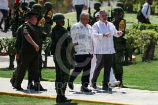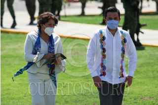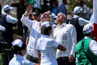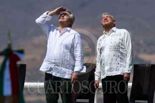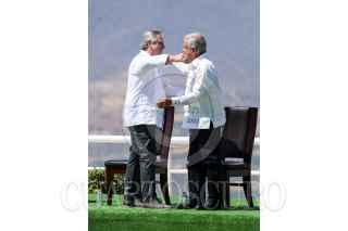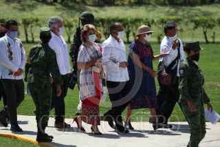IGUALA, GUERRERO, 24FEBRERO2021.- Los presidentes Alberto Fernández (Argentina) y Andrés Manuel López Obrador (México) en compañía de sus esposas Fabiola Yáñez, periodista y actriz argentina, y Beatriz Gutiérrez Müller, investigadora y escritora, respectivamente, encabezaron la conmemoración del duocentésimo aniversario de la promulgación del Plan de Iguala y el Día de la Bandera, hecho con el que se asentaba a México como nación independiente. FOTO: GALO CAÑAS/CUARTOSCURO.COM