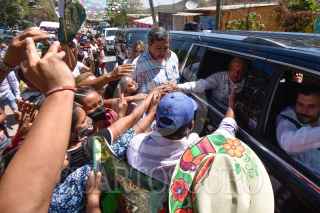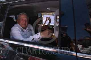 IGUALA, GUERRERO, 24FEBRERO2021.- Andrés Manuel López Obrador, Presidente de México, saluda a habitantes de este municipio, en donde encabezó la ceremonia conmemorativa del Día de la Bandera. El mandatario fue recibido entre varias protestas, unas a favor y otros en contra. En la unidad iba acompañado de su esposa Beatriz Gutiérrez Müller. FOTO: DASSAEV TÉLLEZ ADAME/CUARTOSCURO.COM