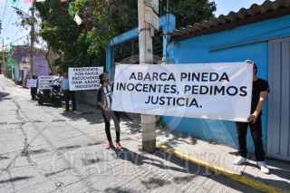IGUALA, GUERRERO, 24FEBRERO2021.- Familiares del ex alcalde de Iguala José Luis Abarca y su esposa María de los Ángeles Pineda, quienes están acusados de participar en desaparición de los estudiantes de Ayotzinapa en septiembre del 2014, protestaron en el marco de la visita del Jefe Ejecutivo, ahí señalaron que están encarcelados injustamente ya que a la fecha aún no se les comprueba su supuesta participación. FOTO: DASSAEV TÉLLEZ ADAME/CUARTOSCURO.COM