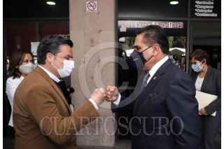 MORELIA, MICHOACAN 25FEBRERO2021.- El director general del Instituto Mexicano del Seguro Social (IMSS), Zoé Robledo, y el gobernador del estado de Michoacán, Silvano Aureoles, encabezaron el Primer Informe de Actividades del Instituto, en donde destacaron los esfuerzos para brindar atención médica a todo paciente con COVID-19 que lo necesitara, y cumplir con ello la política de cero rechazos. FOTOS: IMSS /CUARTOSCURO.COM