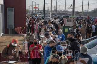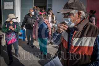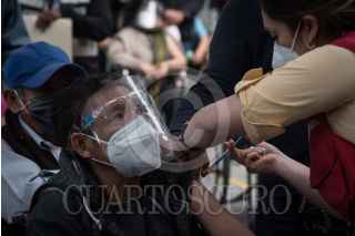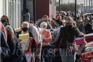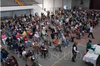 ECATEPEC, ESTADO DE MÉXICO, 25FEBRERO2021.- Adultos mayores continúan asistiendo al Centro Cultural y Deportivo "Las Américas" para recibir la vacuna contra covid-19 "CoronaVac" desarrollada por la empresa china Sinovac Biotech. Desde tempranas horas cientos de adultos mayores acuden a formarse en las largas filas que rodean el inmueble. FOTO: MARIO JASSO/CUARTOSCURO.COM