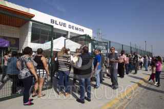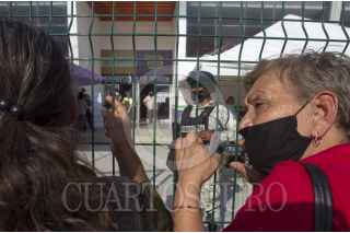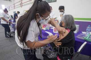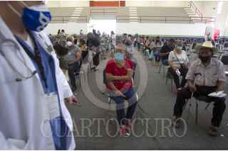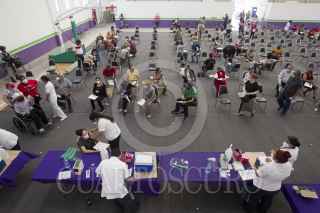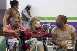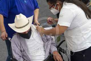 GARCÍA, NUEVO LEÓN, 25FEBRERO2021.- La aplicación de vacunas contra el Covid-19 continúa en municipios alejados del área metropolitana de Monterrey. Se destinaron 9 mil, 700 dosis para el municipio de García, las cuales se aplicarán durante tres días. Cientos de adultos mayores acudieron a los tres módulos adecuados en dos gimnasios y un centro cultural, los cuales cerraron sus puertas una vez terminadas las dosis destinadas para el día, aún con cientos de personas que continuaban haciendo fila en el exterior. La Secretaría de Salud del Estado aseguró que decenas de personas que no residen en el municipio de García acudieron indebidamente para ser vacunados. Nuevo León suma 9 mil, 516 defunciones por Covid-19, el 60% de los casos son de adultos mayores. FOTO: GABRIELA PÉREZ MONTIEL / CUARTOSCURO.COM