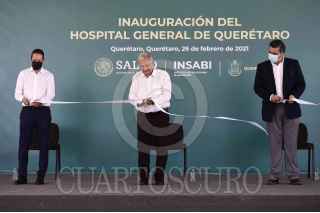 QUERÉTARO, QUERÉTARO, 26FEBRERO2021.- Andrés Manuel López Obrador, presidente de México, Miguel Ángel Villatoro Padilla, director general del Hospital General de Querétaro y Francisco Domínguez Servién, gobernador del Estado, presidieron la inauguración del Hospital General de Querétaro. FOTO: PRESIDENCIA /CUARTOSCURO.COM