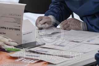 CIUDAD DE MÉXICO, 26FEBRERO2021.- Con espera de hasta 40 minutos en una fila de 15 personas es cómo inició el segundo día de pruebas COVID-19 en Centros Comerciales. Dichos módulos tienen la función de apoyar a los kioscos ya existentes para una detección y atención oportuna a capitalinos contagiados por COVID-19, con horario de atención de 9:00 a 15:00 horas. FOTO: ROGELIO MORALES /CUARTOSCURO.COM