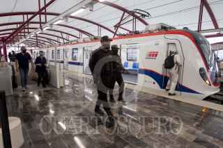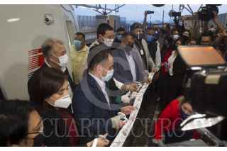 MONTERREY, NUEVO LEÓN, 27FEBRERO2021.- Después de siete años en construcción y la inversión de nueve mil, 439 millones de pesos, la Línea 3 del Metro en Monterrey (Metrorrey) comenzó a operar con nueve estaciones entre San Nicolás y el centro de Monterrey. 26 vagones procedentes de China producidos por la empresa CRRC serán utilizados para la nueva línea y se esperan otros siete vagones alemanes. Gobierno del estado y alcaldes de diversos municipios acudieron a la inauguración. FOTO: GABRIELA PÉREZ MONTIEL / CUARTOSCURO.COM