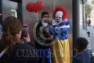 CIUDAD DE MÉXICO, 28FEBRERO2021.- Un hombre de payaso diabólico se gana la vida en avenida Juárez tomándose la foto con las personas que así lo deseen a cambio de una cooperación. FOTO: MOISÉS PABLO/CUARTOSCURO.COM