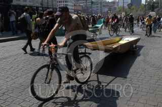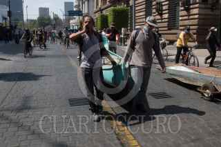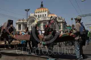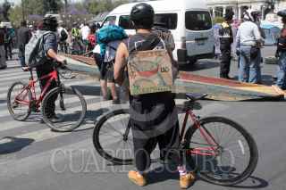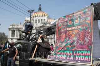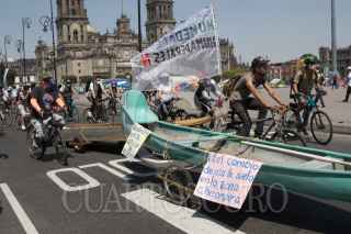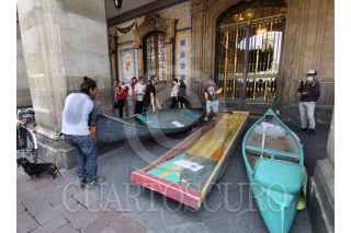 CIUDAD DE MÉXICO, 28FEBRERO2021.- Integrantes de la Coordinación de Pueblos, Barrios Originarios y colonia de Xochimilco, realizaron una rodada desde el Barrio El Rosario, en Xochimilco, hasta la plancha del Zócalo para protestar en contra de la construcción del puente vehicular Periférico-Cuemanco y la restauración del humedal que ha sido afectado por su edificación. Los inconformes llevaron consigo dos cayucos y una canoa que colocaron frente al Antiguo Palacio Virreinal para pedirle a la Jefa de Gobierno que detenga esta obra. FOTO: MOISÉS PABLO/CUARTOSCURO.COM