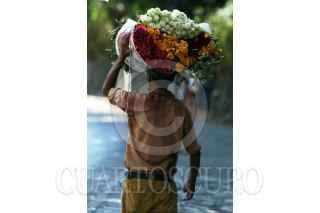 CUERNAVACA, MORELOS, 01MARZO2021.- Un vendedor de rosas camina por una calle de la ciudad, su sudor moja la parte trasera de su camisa. FOTO: MARGARITO PÉREZ RETANA /CUARTOSCURO.COM