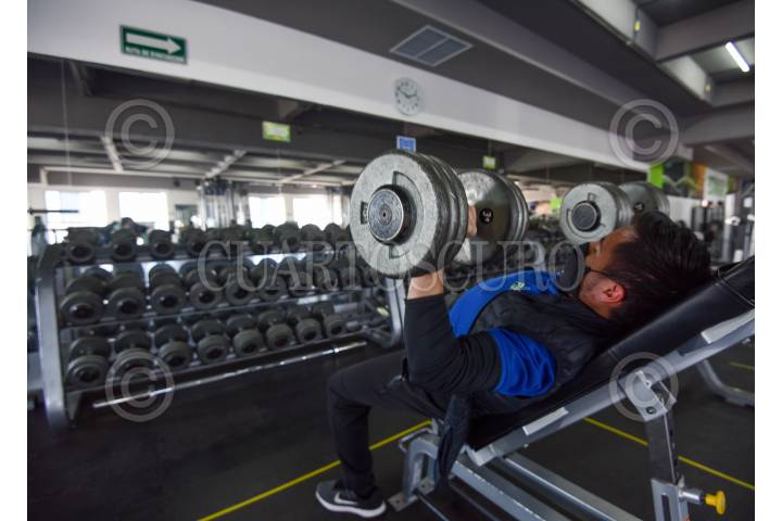 TOLUCA, ESTADO DE MÉXICO, 01MARZO2021.- Gimnasios del Estado se México pudieron regresar a sus actividades con un aforo del 30 por ciento de su capacidad a partir de este lunes, a pesar de continuar en Semáforo Naranja durante la contingencia por COVID-19 en la entidad mexiquense; los usuarios se dijeron contentos de poder regresar a estos espacios y poder utilizar los aparatos para ejercitarse. FOTO: CRISANTA ESPINOSA AGUILAR /CUARTOSCURO.COM