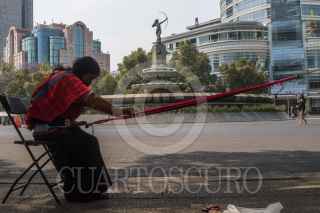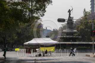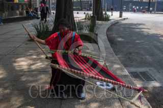 CIUDAD DE MÉXICO, 02MARZO2021.- Artesanos indígenas de la capital bloquearon Reforma, a la altura de la Diana Cazadora, para exigirle a la Jefa de Gobierno espacios para poder comercializar sus productos, además de créditos a la palabra, ya que señalan que tras la inactividad económica derivada de la pandemia de Covid-19, su situación es complicada, además pidieron un alto a los operativos policíacos en su contra en el Centro Histórico. FOTO: MOISÉS PABLO/CUARTOSCURO.COM