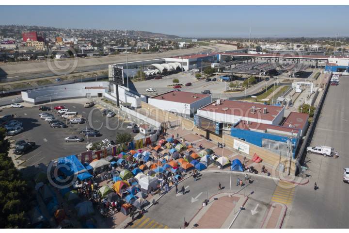 TIJUANA, BAJA CALIFORNIA, 02MARZO2021.- Decenas de migrantes haitianos y centroamericanos que se encuentran instalados en la garita de “El Chaparral” marcharon a la garita Internacional de San Ysidro con el objetivo de que sean escuchados y atendidos por las autoridades de Estados Unidos respecto al asilo político, esto debido a la situación crítica que viven en sus países de origen. Los migrantes han comentado que no se detendrán en sus manifestaciones hasta que se tomen cartas en el asunto por parte de Estados Unidos. Agentes del CBP (Oficina de Aduanas y Protección Fronteriza ) instalaron un fuerte operativo en la entrada del cruce fronterizo para para evitar que los migrantes ingresen al país. FOTO: OMAR MARTÍNEZ /CUARTOSCURO.COM