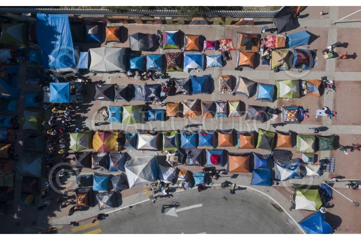 TIJUANA, BAJA CALIFORNIA, 02MARZO2021.- Decenas de migrantes haitianos y centroamericanos que se encuentran instalados en la garita de “El Chaparral” marcharon a la garita Internacional de San Ysidro con el objetivo de que sean escuchados y atendidos por las autoridades de Estados Unidos respecto al asilo político, esto debido a la situación crítica que viven en sus países de origen. Los migrantes han comentado que no se detendrán en sus manifestaciones hasta que se tomen cartas en el asunto por parte de Estados Unidos. Agentes del CBP (Oficina de Aduanas y Protección Fronteriza ) instalaron un fuerte operativo en la entrada del cruce fronterizo para para evitar que los migrantes ingresen al país. FOTO: OMAR MARTÍNEZ /CUARTOSCURO.COM