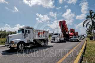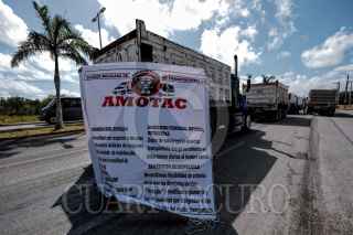 CANCÚN, QUINTANA ROO, 02MARZO2021.- Transportistas se manifestaron en la carretera Cancún-Puerto Morelos, en el tramo entre el Aeropuerto y el Puente del Moon Palace. Los inconfmores estacionaron sobre el carril de la derecha en ambos sentidos, lo que generó un importante congestionamiento vial. El bloqueo se extendió de las ocho de la mañana a las cinco de la tarde y busca solución al alza de los combustibles y de la inseguridad en las carreteras. FOTO: ELIZABETH RUIZ/CUARTOSCURO.COM