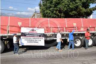 CHILPANCINGO, GUERRERO, 02MARZO2021.- Miembros de la Alianza Mexicana de Organizaciones Transportistas (AMOTAC) se manifestaron en los costados de la Autopista del Sol, en Chilpancingo, para exigir mayor seguridad a los choferes y un alto a los incrementos del peaje. De acuerdo con el delegado de la zona centro de AMOTAC, Gustavo Bustamante Martínez, la protesta es para manifestar su inconformidad con el Gobierno de Andrés Manuel López Obrador, ante los altos costos de insumos de transporte como gasolinas y las casetas de peaje. También exigen mayor seguridad para los transportistas, mantenimiento a las carreteras y disminución de costos por arrastre de grúas. El pasado 10 de febrero los agremiados tomaron la bodega de SEGALMEX (Seguridad Alimentaria Mexicana) en Chilpancingo para exigir ser contratados por el Gobierno federal para realizar acarreos dentro del programa de precios de garantía del Maíz, labor que actualmente la realizan camiones rentados a una empresa foránea. FOTO: DASSAEV TÉLLEZ ADAME/CUARTOSCURO.COM