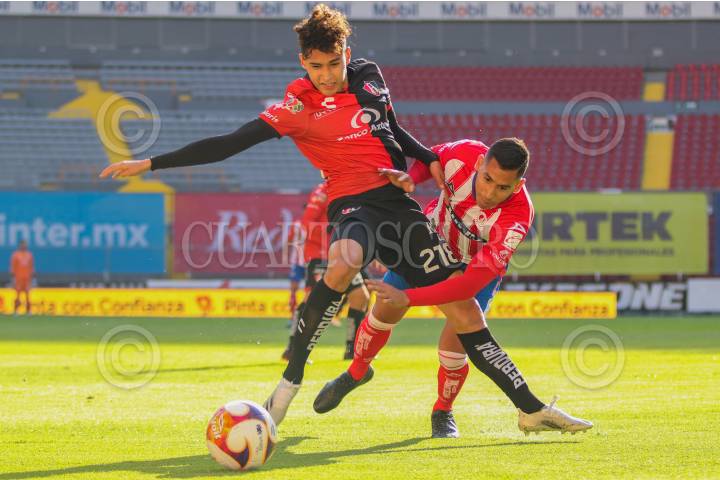 GUADALAJARA, JALISCO, 02MARZO2021.- Atlas venció al Atlético San Luis 3-1, en partido disputado en el Estadio Jalisco. Las anotaciones de los locales fueron obra de Aldo Rocha, Jairo Torres y Ángel Jeremy Márquez Castañeda, mientras que los visitantes descontaron con un gol de Germán Berterame. FOTO: CORTESÍA LIGA MX/IMAGO 7/CUARTOSCURO.COM