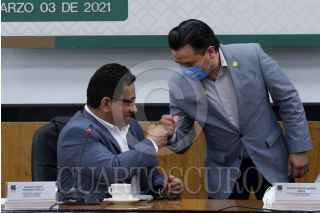 CIUDAD DE MÉXICO, 03MARZO2021.- Los legisladores: Josefina Salazar Báez; Mario Alberto Rodríguez y Marco Antonio Andrade, durante la reunión extraordinaria de la Comisión de Vigilancia de la Auditoría Superior de la Federación, en la que se aprobó la fecha de la comparecencia de Agustín Caso, auditor especial de Desempeño de la ASF. FOTO: MARIO JASSO/CUARTOSCURO.COM