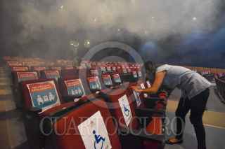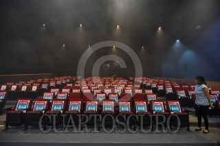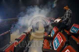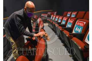 TOLUCA, ESTADO DE MÉXICO, 03MARZO2021.- La Cineteca Mexiquense se prepara para reanudar actividades este miércoles, después de haber permanecido cerrada dos meses ante la contingencia por COVID-19; desde temprana hora se iniciaron los trabajos de sanitización de las salas y demás espacios para poder recibir a la población, tendrá dos horarios y se deberán seguir todas las medidas higiénicas para evitar contagios; a pesar de permanecer cerradas las instalaciones de la Cineteca, se continuó ofreciendo una agenda digital en donde se pueden ver ciclos de cine sin salir de casa. FOTO: CRISANTA ESPINOSA AGUILAR /CUARTOSCURO.COM