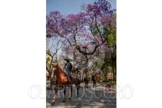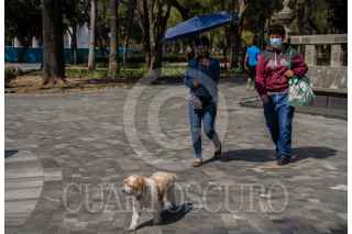 CIUDAD DE MÉXICO, 03MARZO2021.- Capitalinos buscan como resguardarse del sol y las altas temperaturas durante su visita al Centro Histórico perteneciente a la alcaldía Cuauhtémoc una de las 4 donde se activo la alerta naranja según informes de La Secretaría de Gestión Integral de Riesgos y Protección Civil. La Alameda Central avisa el próximo comienzo de la primavera con árboles llenos de Jacarandas. FOTO: ANDREA MURCIA /CUARTOSCURO.COM