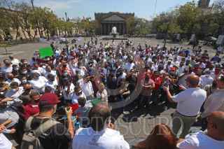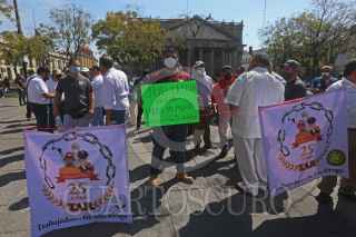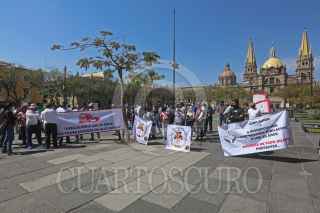 GUADALAJARA, JALISCO, 03MARZO2021.- Servidores Públicos de distintas corporaciones de seguridad y considerados Trabajadores de Alto Riesgo protestaron esta mañana en la Plaza de la Liberación justo enfrente del Congreso del Estado, para solicitar que sea aprobada la iniciativa de ley de los 25 años de antigüedad laboral. FOTO: FERNANDO CARRANZA GARCIA / CUARTOSCURO.COM