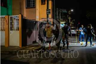 VERACRUZ,VERACRUZ,04MARZO2021.- Un hombre de 62 años de edad protagonizó un enfrentamiento armado contra elementos de diversas corporaciones policiacas que llegaron a atender un reporte de presunta violencia contra una mujer, la cual pedía ayuda a través de una ventana del domicilio según lo informado por vecinos al 911. Al verse rodeado por la policía, el sujeto se atrincheró en la parte alta de su casa, disparando e hiriendo a un elemento de la Policía Naval, para posteriormente rendirse y entregarse para ser detenido. La balacera que se prolongó por varias horas, causó pánico en la zona. Esta mañana autoridades municipales informaron que el elemento policiaco será sometido a una cirugía en la pierna y afirmaron que las primeras investigaciones no arrojan violencia de género, ya que no se localizó a ninguna mujer al interior de la vivienda. FOTOS: VICTORIA RAZO /CUARTOSCURO.COM