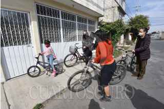 TOLUCA, ESTADO DE MÉXICO, 04MARZO2021.- Bicionarias Mujeres al Manubrio, es un colectivo que nace hace 8 años para promover la movilidad sustentable en el Valle de Toluca, actualmente lanzaron el programa Sana, Sana la bici me salva, que consiste en el acompañamiento para mujeres en confinamiento durante la pandemia por COVID-19, para tomarse un respiro del encierro, trabajó a distancia, actividades en casa y poder salir a caminar o andar en bicicleta entre mujeres. Actualmente son 100 mujeres en Zinacantepec, Toluca, Metepec y Lerma que se encuentran participando en este programa. FOTO: CRISANTA ESPINOSA AGUILAR /CUARTOSCURO.COM