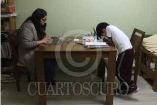 CIUDAD DE MÉXICO, 04MARZO2021.- La pandemia aceleró la apertura de las empresa al home office (trabajo desde casa), esta modalidad está siendo adoptada por miles de hombres y mujeres que pueden llevar sus actividades laborales desde su hogar, sin arriesgarse a permanecer muchas horas en lugares cerrados, como las oficinas que carecen de la ventilación adecuada una condición que eleva las probabilidades de contagio de Covid-19. En el caso de la madres de familia la carga es doble ya que tienen que cumplir con las entregas laborales, además de ocuparse de que los hijos cumplan con las clases en línea, y de los deberes domésticos que acumulan en el día, estas dos últimas actividades sin remuneración económica. Sin embargo mujeres señalan esta modalidad de trabajo virtual les permite más convivencia con sus hijos, a quienes en la modalidad de trabajo presencial las obligaba a dejarlos de 8 a 10 horas. FOTO: MOISÉS PABLO/CUARTOSCURO.COM