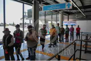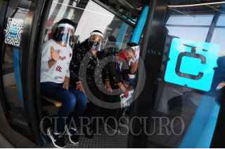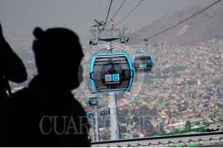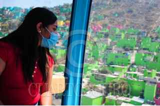 CIUDAD DE MÉXICO, 04MARZO2021.- Claudia Sheinbaum, jefa de gobierno de la capital, en compañía de Gustavo Chiguil, alcalde de la demarcación y de Andrés Lajous, titular de la Secretaría de Movilidad capitalina, quienes encabezaron el evento la inauguración del tramo de la Línea 1 del Cablebús que va de Tlalpexco a Campos Revolución en la zona de Cuautepec, en la Alcaldía Gustavo A. Madero. Se espera que para finales de abril, el trayecto que falta rumbo a Indios Verdes, este concluido. El costo de este transporte público será gratuito durante los primeros días de su funcionamiento. FOTO: DANIEL AUGUSTO /CUARTOSCURO.COM