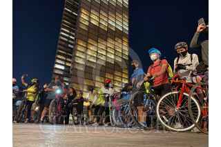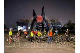 CIUDAD DE MÉXICO, 04MARZO2021.- Ciclistas de diversos colectivos realizaron una rodada partiendo del Estadio Azteca a la Estela de Luz, los ciclistas buscaban fomentar el uso de la bicicleta en la ciudad así como un protocolo de atención para accidentes viales en donde se vean involucrados ciclistas. FOTO: ROGELIO MORALES /CUARTOSCURO.COM