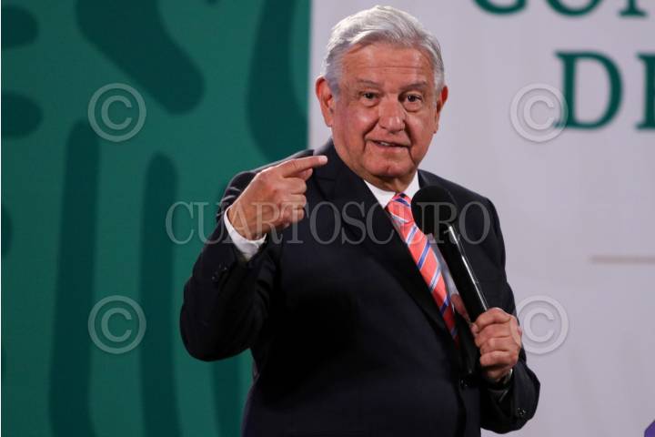 CIUDAD DE MÉXICO, 05MARZO2021.- Andrés Manuel López Obrador, presidente de México, y Jorge Mendoza Sánchez, director de Banobras, encabezaron la conferencia mañanera donde informaron sobre la subasta de 19 aeronaves que se compraron en sexenios pasados. La licitación se llevará acabo en la Base Aérea Militar No. 19 (Ex hangar presidencial) el próximo 12 de marzo. FOTO: GALO CAÑAS/CUARTOSCURO.COM