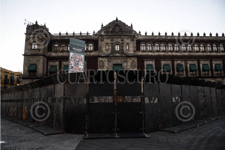 CIUDAD DE MÉXICO, 05MARZO2021.- Con vallas metálicas ha sido resguardado Palacio Nacional como medida de prevención de daños al inmueble durante la próximas manifestaciones feministas del 8 de marzo. FOTO: MARIO JASSO/CUARTOSCURO.COM
