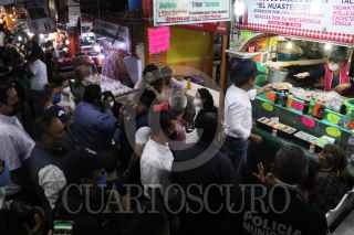 CUERNAVACA, MORELOS, 05MARZO2021.- Sin respetar las medidas de distancia social para evitar contagios de Covid-19, el alcalde la capital Francisco Villalobos, se come unos tacos en un puesto del mercado Adolfo López Mateos El funcionario local recorrió el mercado y aprovecho para comer ahí, pero su grande comitiva no respeta la sana distancia. FOTO: MARGARITO PÉREZ RETANA /CUARTOSCURO.COM