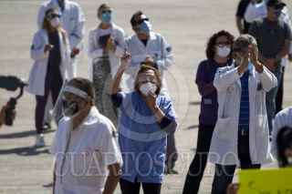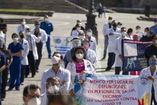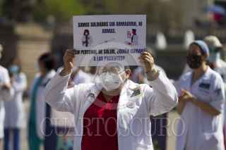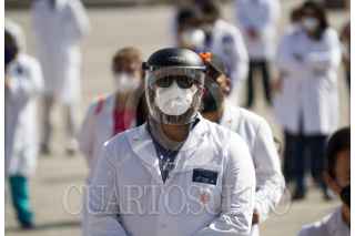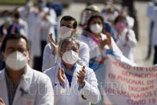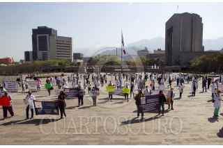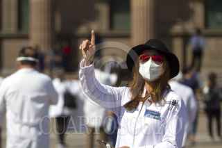 MONTERREY, NUEVO LEÓN, 06MARZO2021.- Médicos de instituciones privadas y públicas se congregaron en la Explanada de los Héroes para exigir que sean vacunados contra el Covid-19, puesto que trabajan en primera línea con el virus. FOTO: GABRIELA PÉREZ MONTIEL / CUARTOSCURO.COM