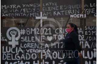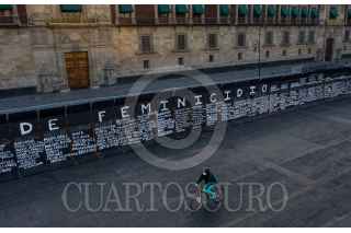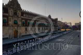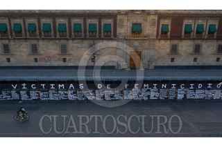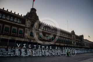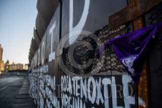 CIUDAD DE MÉXICO, 07MARZO2021.- Mujeres de distintas colectivas intervinieron las vallas colocadas por el gobierno de la Ciudad en Palacio Nacional previo al 8m -Día internacional de la Mujer-. Organizadas pintaron durante la noche los nombres de mujeres sobrevivientes y víctimas de feminicidio como protesta contra las vallas que protegen el recinto. FOTO: ANDREA MURCIA / CUARTOSCURO.COM