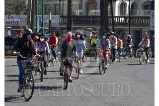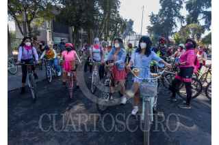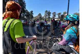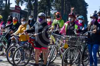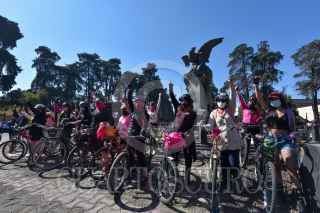 TOLUCA, ESTADO DE MÉXICO, 07MARZO2021.- En el Marco del 8 de Marzo integrantes de Bicionarias con una rodada salieron a exigir seguridad en las calles y respeto a las mujeres que caminan y andan en bicicleta; celebrando 8 años de su fundación buscan acortar la brecha de género en el ciclismo urbano, de 10 ciclistas urbanos 1 es mujer, impulsan que las mujeres tomen las bicicletas y políticas públicas que les permitan rodar con respeto y seguridad haciendo visible la necesidad de más infraestructura para los ciclistas. FOTO: CRISANTA ESPINOSA AGUILAR /CUARTOSCURO.COM