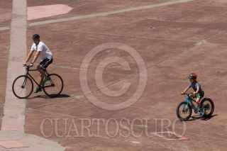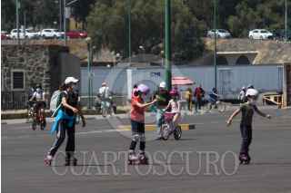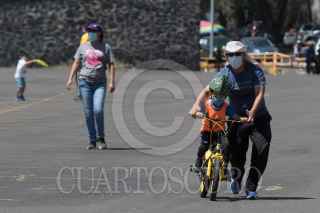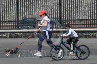CIUDAD DE MÉXICO, 07MARZO2021.- Familias se dan cita en los estacionamientos del Estadio Olímpico Universitario para andar en bicicleta, correr, pasear con sus mascotas o simplemente para dar una caminata, la ciudad actualmente se encuentra en semáforo naranja la cual ha relajado las restricciones de convivencia social tras ya casi una año de pandemia. FOTO: MOISÉS PABLO/CUARTOSCURO.COM