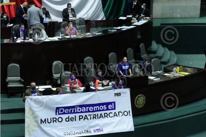 CIUDAD DE MÉXICO, 08MARZO2021.- Sesión solemne de la Cámara de Diputados con motivo del Día Internacional de la Mujer, y develación en el muro de honor con letras de oro los nombres “Hermila Galindo Acosta y Elvia Carrillo Puerto”. FOTO: MARIO JASSO/CUARTOSCURO.COM