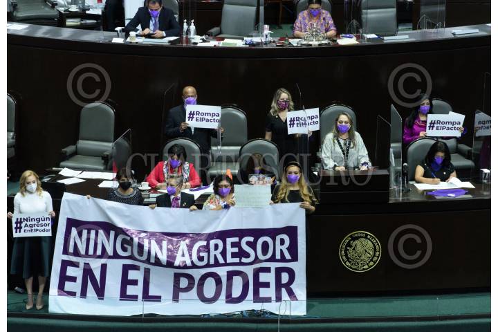CIUDAD DE MÉXICO, 08MARZO2021.- Sesión solemne de la Cámara de Diputados con motivo del Día Internacional de la Mujer, y develación en el muro de honor con letras de oro los nombres “Hermila Galindo Acosta y Elvia Carrillo Puerto”. FOTO: MARIO JASSO/CUARTOSCURO.COM