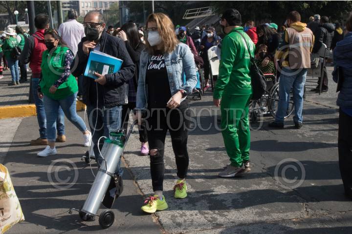 CIUDAD DE MÉXICO, 08MARZO2021.- Inició la vacunación contra el Covid-19 a personas de la tercera edad, en el macrocentro de vacunación instalado en Campo Marte en donde se aplicarán a partir de hoy y hasta el 14 de marzo más de 5400 dosis por día. Desde tempranas horas adultos mayores se dieron cita, al principio se complicó la logística, sin embargo, conforme pasaron las horas la atención fue más rápida. Personal médico les explicaron a las personas que iban a ser vacunados que serían inmunizados con el biológico de Pfizer. FOTO: MOISÉS PABLO/CUARTOSCURO.COM