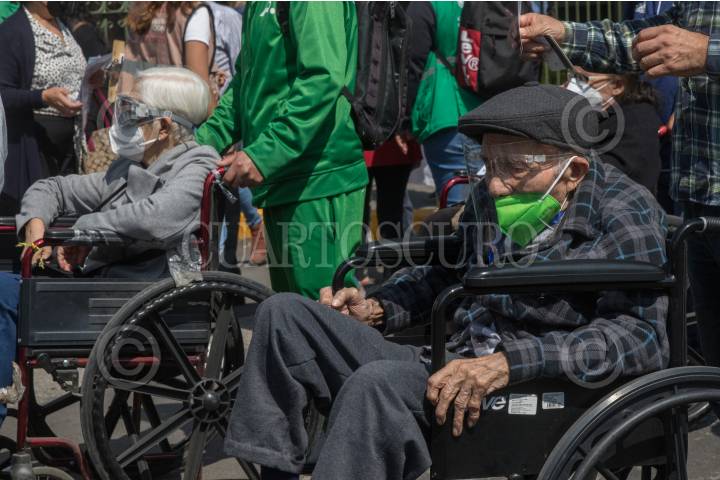 CIUDAD DE MÉXICO, 08MARZO2021.- Inició la vacunación contra el Covid-19 a personas de la tercera edad, en el macrocentro de vacunación instalado en Campo Marte en donde se aplicarán a partir de hoy y hasta el 14 de marzo más de 5400 dosis por día. Desde tempranas horas adultos mayores se dieron cita, al principio se complicó la logística, sin embargo, conforme pasaron las horas la atención fue más rápida. Personal médico les explicaron a las personas que iban a ser vacunados que serían inmunizados con el biológico de Pfizer. FOTO: MOISÉS PABLO/CUARTOSCURO.COM