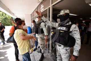 CHILPANCINGO, GUERRERO, 08MARZO2021.- Trabajadores de la clínica-hospital del ISSSTE en Chilpancingo, se manifestaron frente a sus instalaciones para exigir la inmediata destitución de la administradora Jairán Jacqueline Bailón Méndez, a quien señalan de acoso laboral y prácticas incorrectas en la administración del nosocomio. El personal del hospital fue apoyado por un grupo de maestros cetegistas que acudieron a solidariamente a la protesta, colocaron sus pancartas y gritaron consignas en contra de la funcionaria. Los quejosos establecieron que la administradora desde el mes de octubre pasado inicio una campaña de hostigamiento contra un grupo de trabajadores a los que les ha levantado actas administrativas con argumentos falsos, además de asignar cargas de trabajo diferentes para que se generen situaciones adversas que deriven en más actas administrativas. También acusaron a Bailón Méndez de tener familiares como trabajadores de contrato al interior del nosocomio lo que es considerado como nepotismo laboral, y estos perciben salarios superiores a los que tiene otros empleados que desempeñan la misma función. La protesta inició alrededor de las 11 y media de la mañana y en ella participaron alrededor de 50 trabajadores que se duplicaron con la participación de los cetegistas. FOTO: DASSAEV TÉLLEZ ADAME/CUARTOSCURO.COM