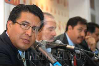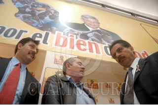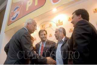 MÉXICO D.F. 25JULIO2006.- Dante Delgado presidente del partido convergecia y los perredistas, Yeidckol Polevnsky, Fernández Noroña, Leonel Cota Montaño y Oscar González Yañez de convergencia, durante la reunión para la organización del mitin informativo del proximo 30 de Julio. FOTO: Guillermo Perea/CUARTOSCURO.COM