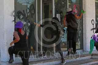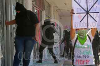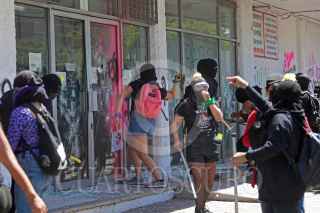 GUADALAJARA, JALISCO, 08MARZO2021.- Hoy se llevo a cabo una marcha feminista para conmemorar el “Día Internacional de la Mujer”, un grupo de aproximadamente 400 mujeres camino de la Glorieta de la Normal hasta las instalaciones del Centro de Justicia para la Mujer protestando por los feminicidios e injusticias en contra de miles de mujeres alrededor del territorio nacional, durante su trayecto algunos grupos radicales vandalizaron algunos inmuebles entre ellos una sucursal bancaria. FOTO: FERNANDO CARRANZA GARCIA / CUARTOSCURO.COM