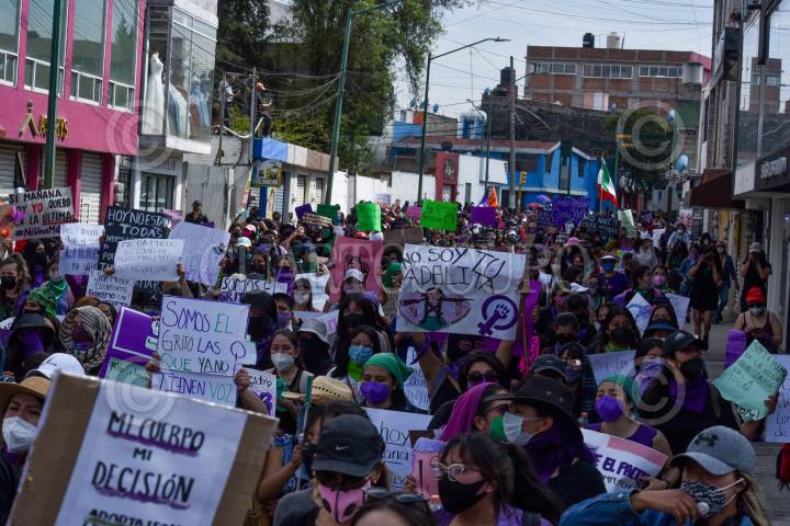 TOLUCA, ESTADO DE MÉXICO, 08MARZO2021.- En el marco del Día Internacional de la Mujer diversos colectivos de mujeres del Valle de Toluca se reunieron en la Facultad de medicina de la UAEM, a minutos de iniciar su marcha tuvieron un enfrentamiento con policías estatales al impedirles el paso por la avenida Jesus Carranza y continuaron su marcha por Paseo Tollocan. FOTO: CRISANTA ESPINOSA AGUILAR /CUARTOSCURO.COM