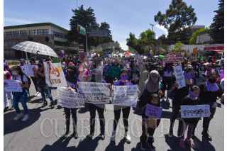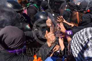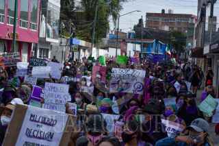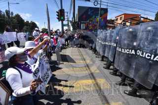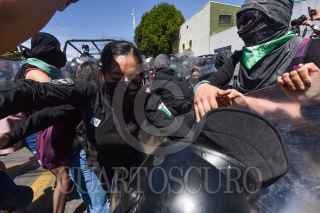 TOLUCA, ESTADO DE MÉXICO, 08MARZO2021.- En el marco del Día Internacional de la Mujer diversos colectivos de mujeres del Valle de Toluca se reunieron en la Facultad de medicina de la UAEM, a minutos de iniciar su marcha tuvieron un enfrentamiento con policías estatales al impedirles el paso por la avenida Jesus Carranza y continuaron su marcha por Paseo Tollocan. FOTO: CRISANTA ESPINOSA AGUILAR /CUARTOSCURO.COM