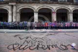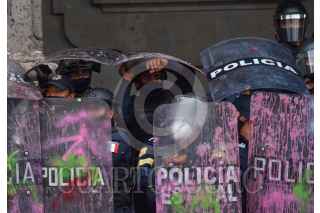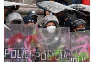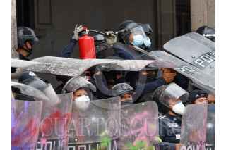 TOLUCA, ESTADO DE MÉXICO, 08MARZO2021.- Policías estatales resguardan Palacio de Gobierno los cuales tuvieron un confrontamiento con mujeres que participaron en la marcha del 8M. FOTO: CRISANTA ESPINOSA AGUILAR /CUARTOSCURO.COM
