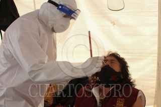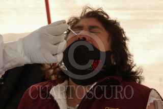 CIUDAD DE MÉXICO, 09MARZO2021.- Vecinos de la alcaldía Magdalena Contreras, continúan asistiendo a los Kioscos de la Salud ubicados en diversos puntos de la demarca para realizarse la prueba de detección de COVID-19. Cabe mencionar que pese a la baja en contagios y hospitalizaciones, la Ciudad permanecerá en semáforo naranja. FOTO: ROGELIO MORALES /CUARTOSCURO.COM